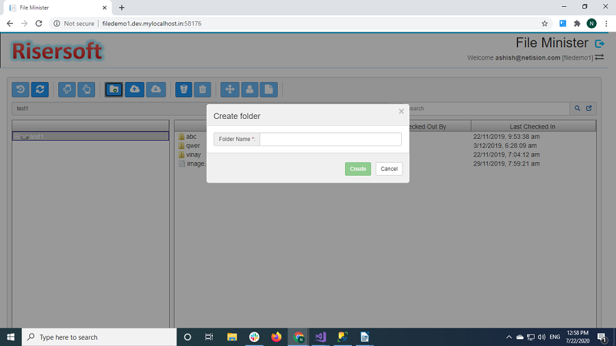 Click on selected folder icon to create a folder.