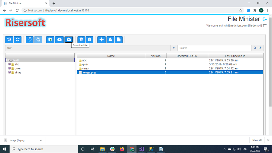 You can select the any file and click on download icon or right click on selected file and download the file.