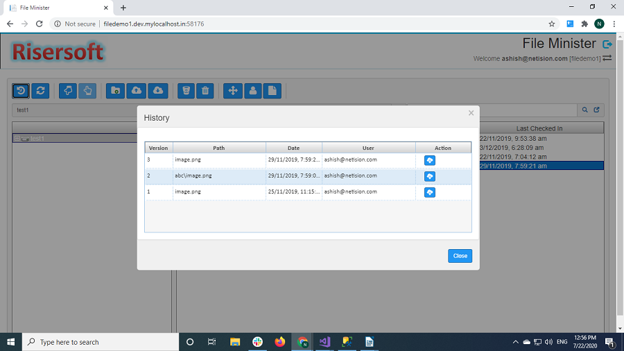 You can select any file and check history of selected file.