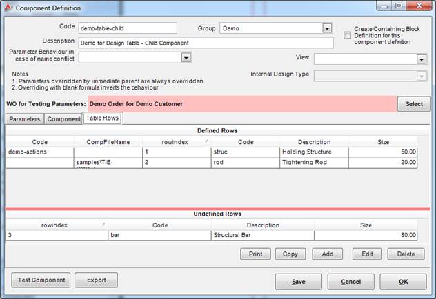 Once it is set up, select the "Table Rows” tab. This will display two grids one below another. The top grid lists all rows which have been defined. The bottom grid lists all rows which have not been defined.