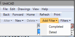 For example, the “Jobs” view has two applicable filters – “Completed” and “Dated”. If the “Completed” filter is set to “No”, only those jobs are returned which have not been completed. If the “Dated” filter is set, only those jobs are returned which satisfy the dates set in the filter.
