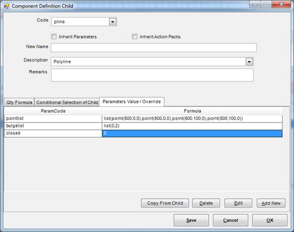 Parameters – Pointlist, Bulgelist, Closed