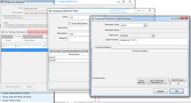 If you select “local parameters not required”, all parameters in the component that are not present in the scope of the parent will be discarded. This is used by all FormulaCAD internal components like line, circle etc.