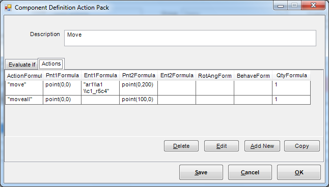 This action moves all the components in the current block definition by a distance and angle (vector) as identified by point and point2. It has the effect of shifting the origin.