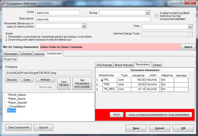 You can also press the “Copy unmapped parameters to local parameters” button to automatically create local parameters with the same code as the unmapped parameters. Then you need to go to to the local parameters tab to define the formulaes for each one of them.