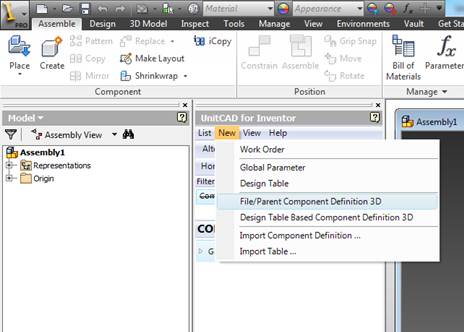Select File/Parent Component Definition 3D from the new menu