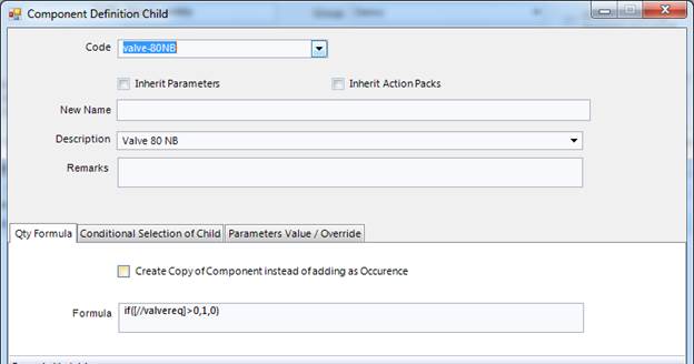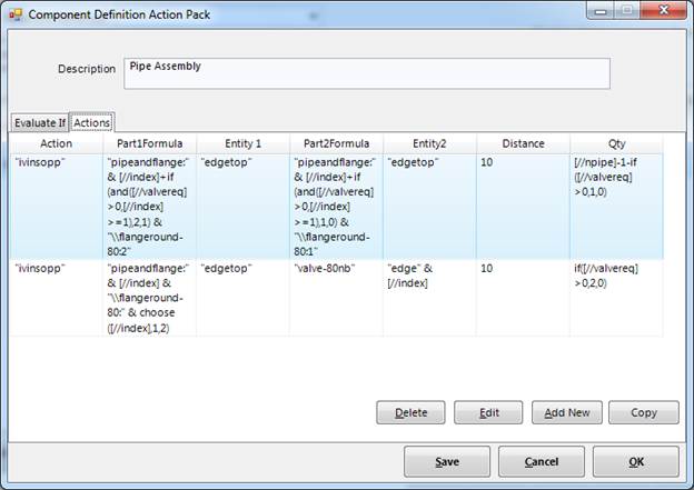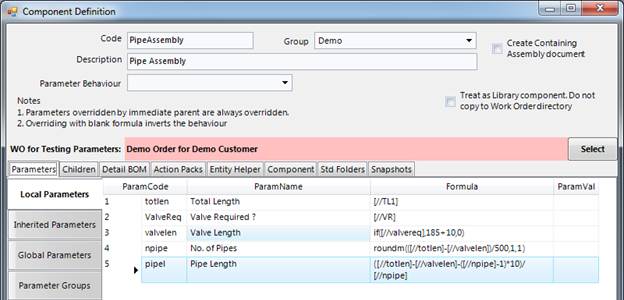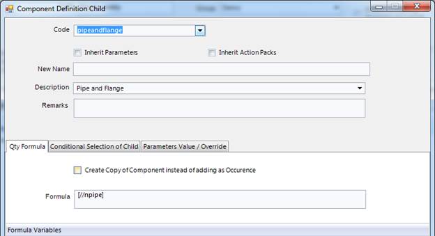 Notice that quantity has been given a formula [//npipe]. PipeAssembly component definition needs to make sure that a parameter with the name npipe exists and is calculated appropriately.
