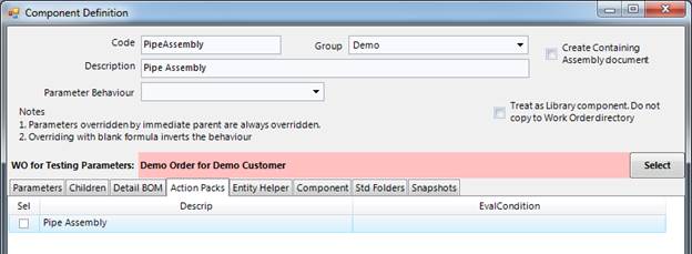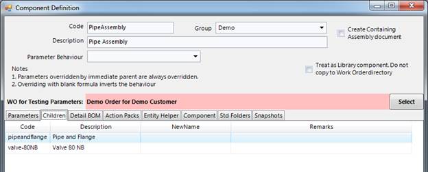 Now we are in a position to run this sample. You can select “Test Component” from this screen to make this dynamic component. You can also go to the work order CAD maker screen to change the global parameters and see the effects.
