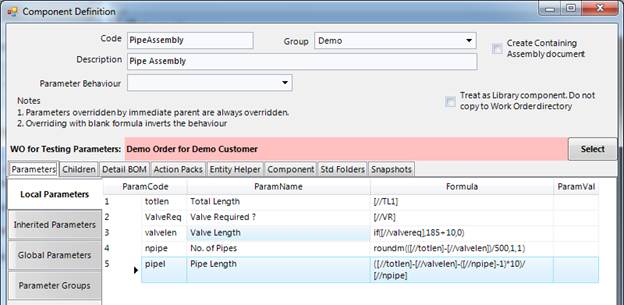 | Npipe | This is the parameter given in the quantity field of the PipeandFlange child. | We can see that the formula ensures that individual pipe cannot be more than 500 long |