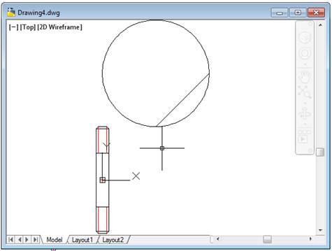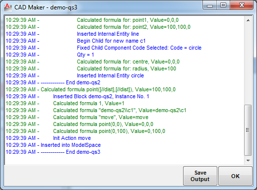 Notice that demo-qs1 block (tie-rod) is inserted at (0,0). Demo-qs2 is inserted at (100,100) which is the value of the “dist” parameter. The Circle Center and line origin do not coincide because we used the move action to move the center up by a distance of 100.