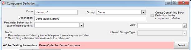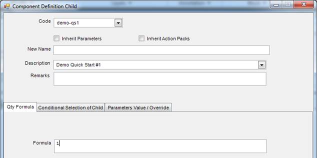 Select “File / Parent Component definition” from the New Menu and make entries as follows