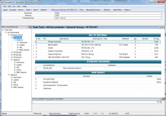 Bill of Material for Work Order Document