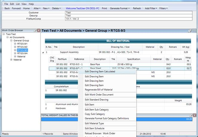 For dxf file for nesting, we can select “Edit Drawing Item Calculated” from the context menu: