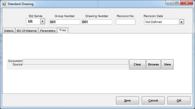 On the top portion of this screen, we can define a standard drawing series. PowerBOM will display a list of series already entered in the system. You can choose from them or enter a new one.
