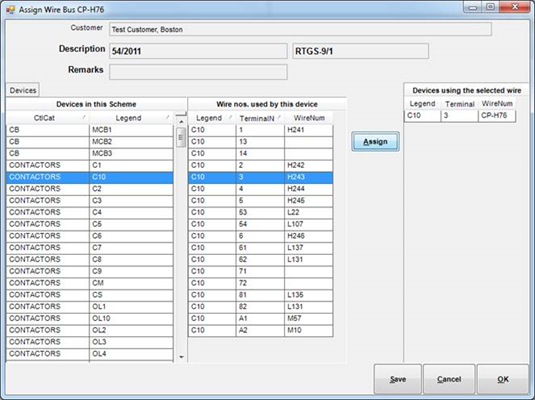 When we select the device in the leftmost grid, its terminals are shown in the middle grid. We can then press the “Assign” button to assign the selected bus to this terminal. Once we are finished with all devices, we can press OK.