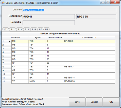 Between Panels or Between Field Area Devices and Panels, it is important to note which exact device terminal is getting connected to which exact device terminal (point-to-point interconnections).