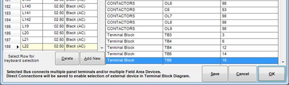 In this screen, VisualCircuit shows all buses that have been marked as multi bus. For each bus, connected device terminals are shown. We need to select all point-to-point interconnections that exist between panels and between panels and devices.