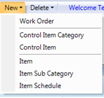 The New menu allows you to create entities. Information on each entity can be found in the respective sections.