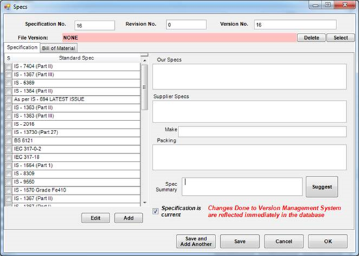 Control Schematics reporting frequently involves preparation of material lists. This means that detailed specifications needed for ordering also need to be part of the output generated. Version Management system is a facility to do just that. It works at three levels –
